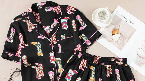 Green Leopard Satin Ruffle Pajama Short Set