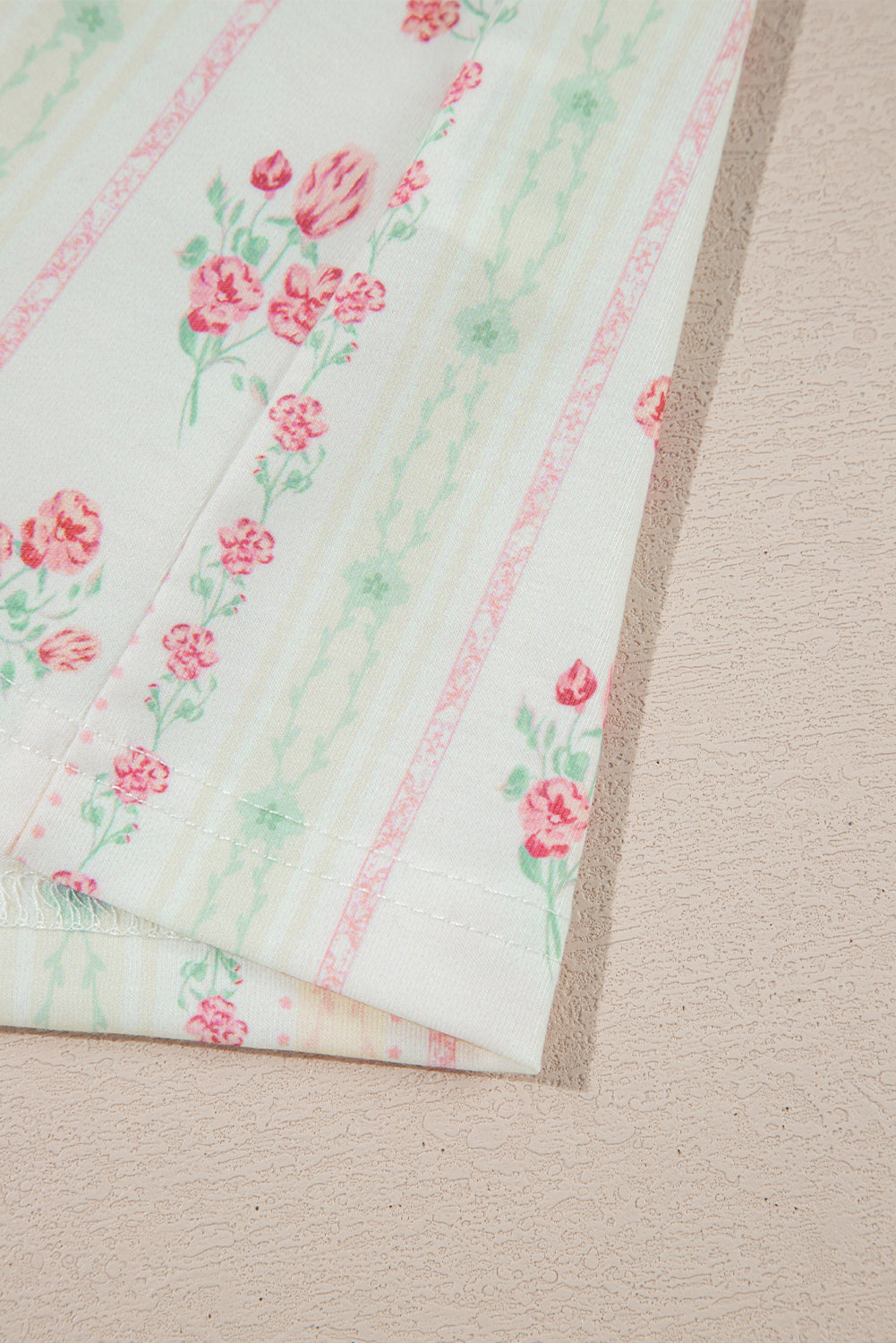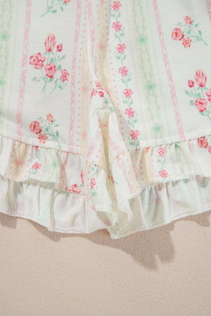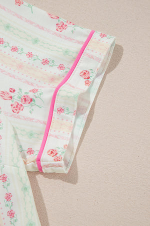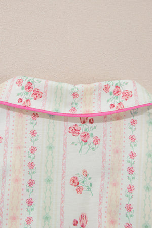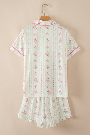Beige Floral Print Contrast Pipping Short Pajamas Set