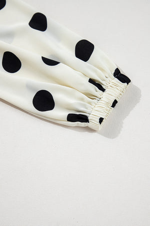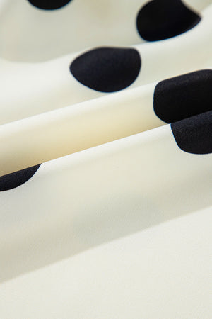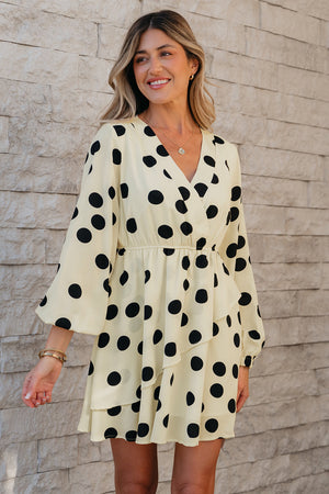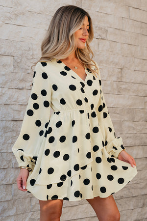 Beige Polka Dot Printed Surplice V Neck Puff Sleeve Mini Dress