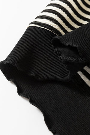 Black Stripe Loose Drop Shoulder Long Sleeve Top