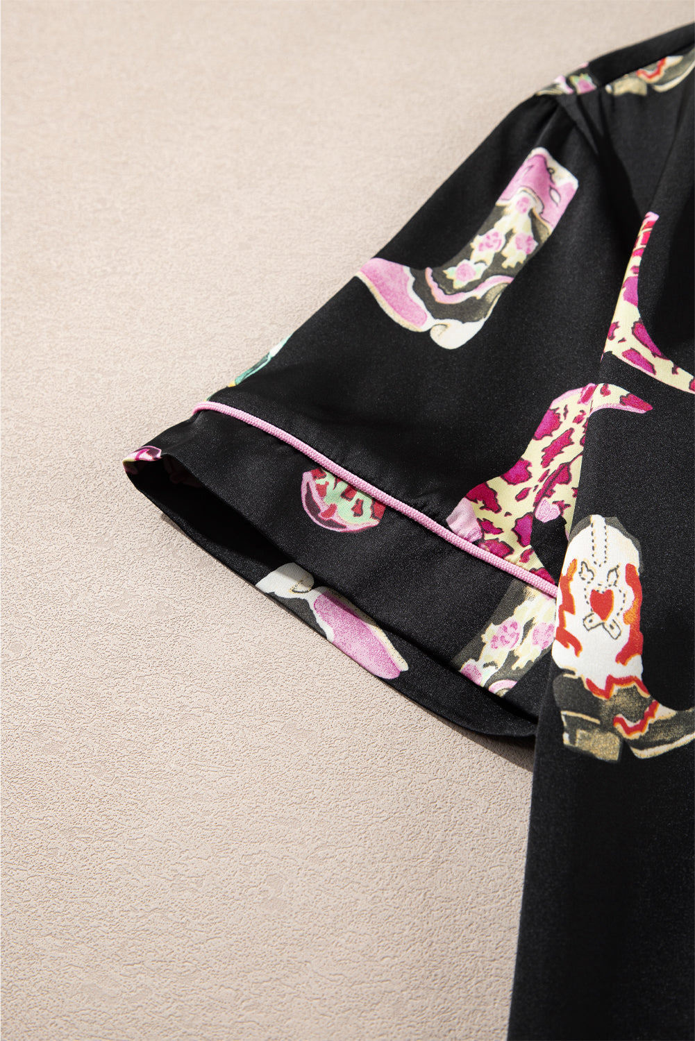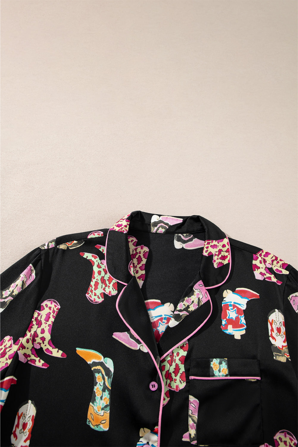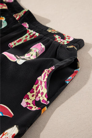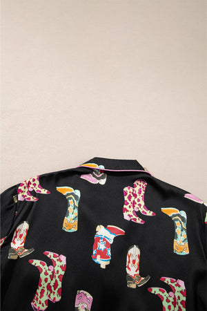 Black Western Boots Printed Short Pajama Set