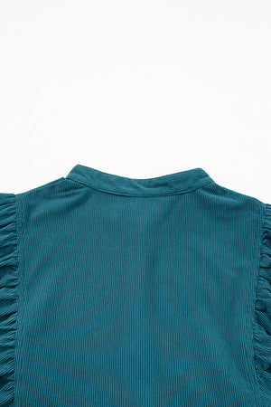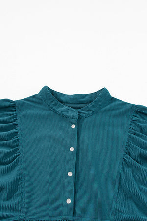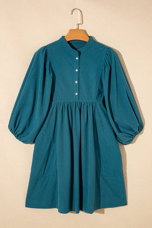 Blue Corduroy Snap Buttons Empire Waist Bracelet Sleeve Dress