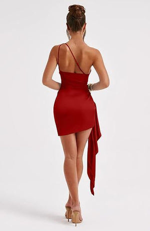 Cross-Border Amazon One Shoulder Pleated Slit Sexy Satin Dress