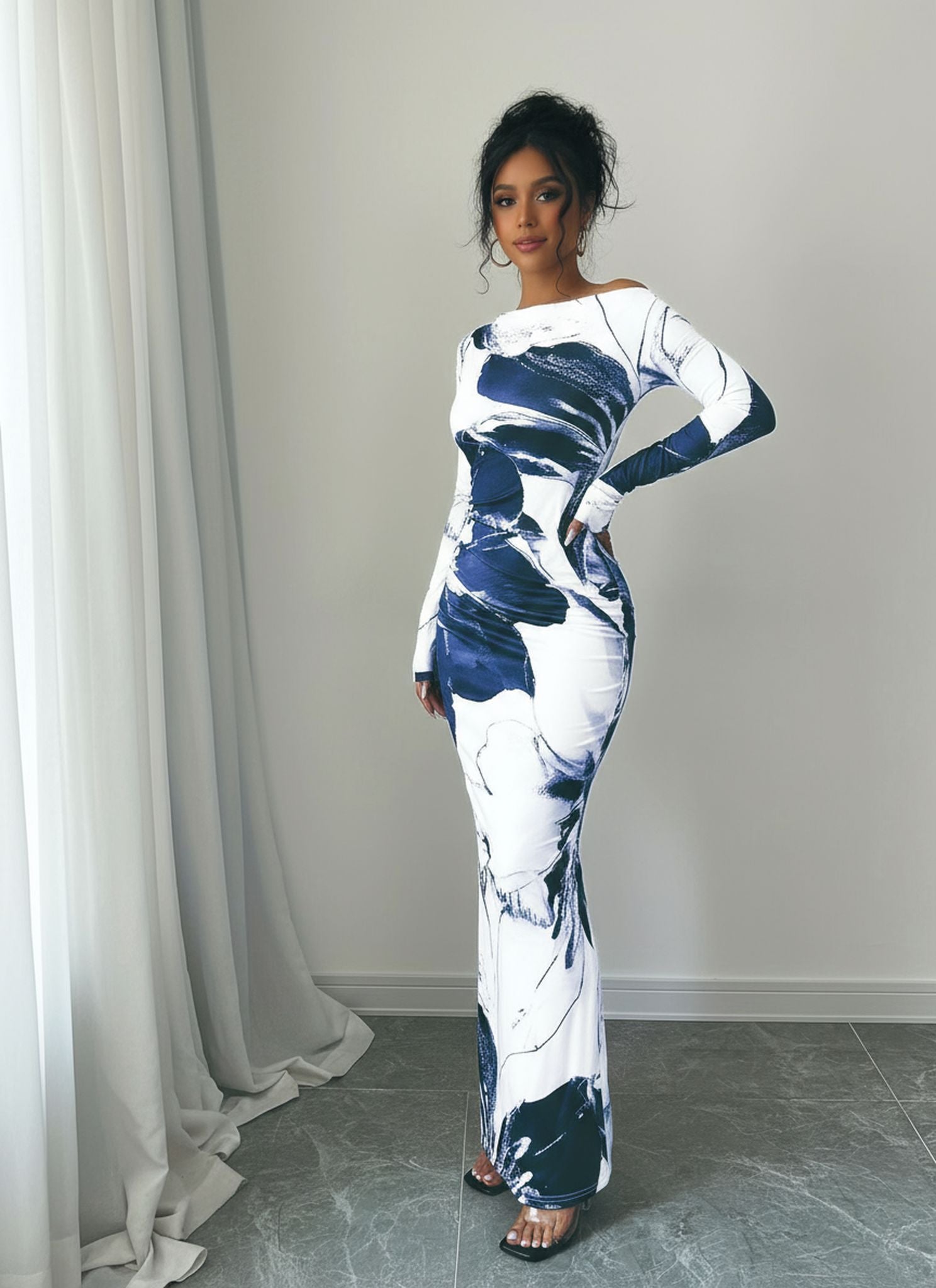Floral Print Crossbody Shoulder Hip Wrap Dress