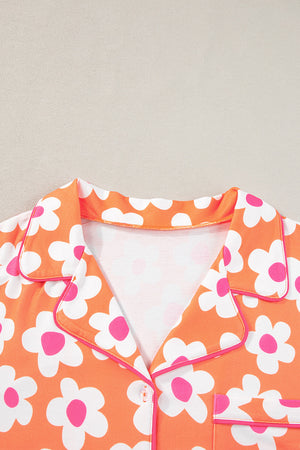Orange Flower Print Short Sleeve Shirt Pajamas Set