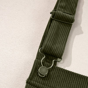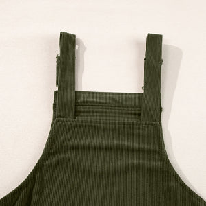 Vineyard Green Solid Front Pockets Sleeveless Corduroy Overall Dress