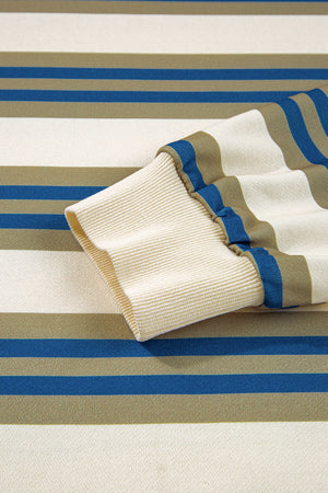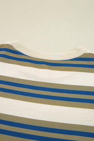 Khaki Stripe Crew Neck Drop Shoulder Pullover Sweatshirt