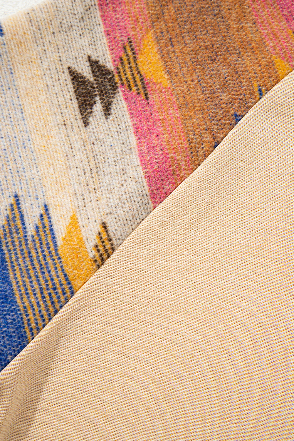 Light French Beige Aztec Patchwork Raglan Pullover Sweatshirt