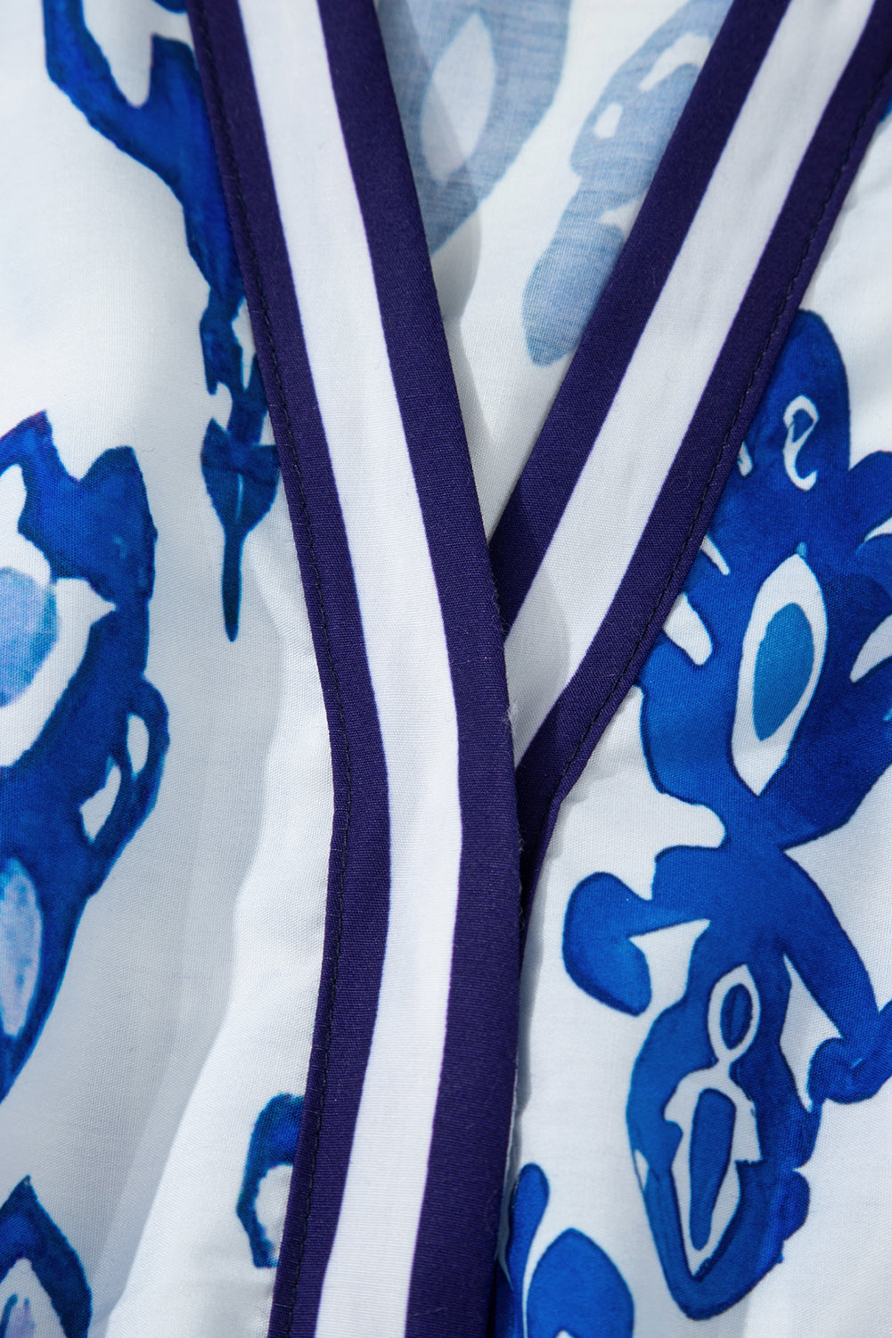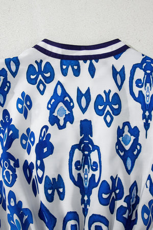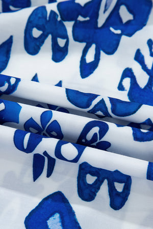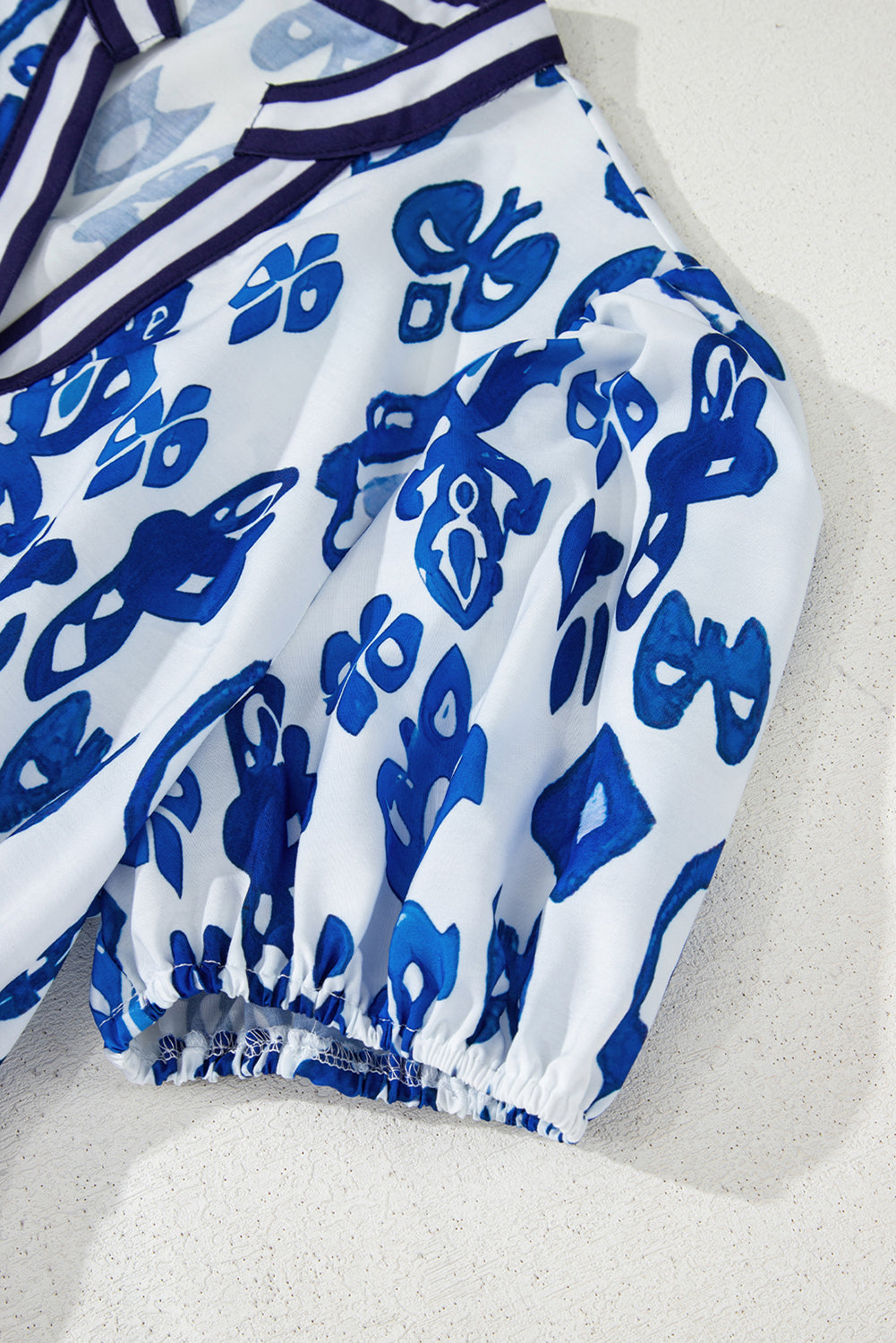 Blue Floral Puff Short Sleeve V Neck High Waist Maxi Dress