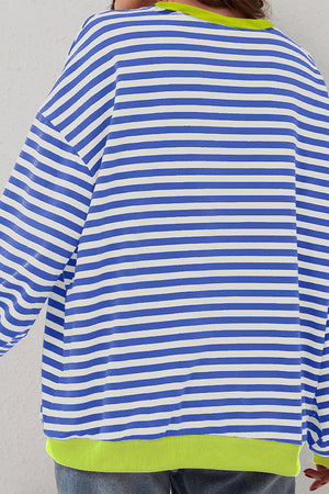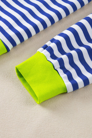 Sky Blue Stripe Striped Contrast Ribbed Trim Crossed Stitch Drop Shoulder Sweatshirt