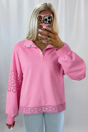 Bonbon Embroidered Flower Patchwork Snap Buttons Pullover Sweatshirt