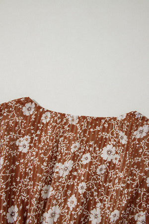 Brown Boho Floral Ruffled Puff Sleeve V Neck Mini Dress