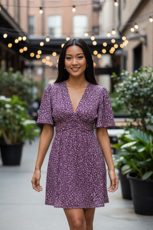 Deep V-Neck Summer New Ruffled Sleeve With Small Floral Resort Style Dress