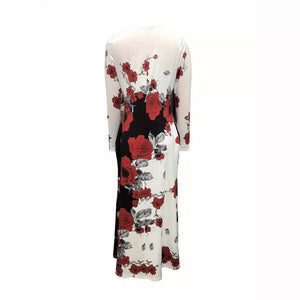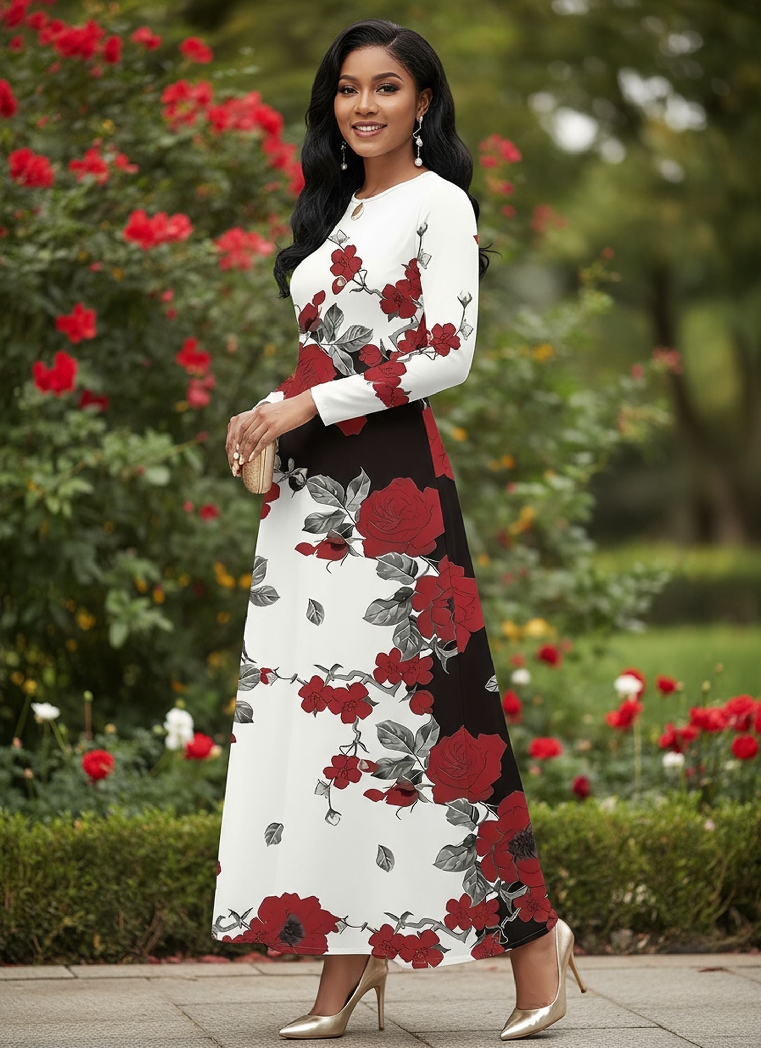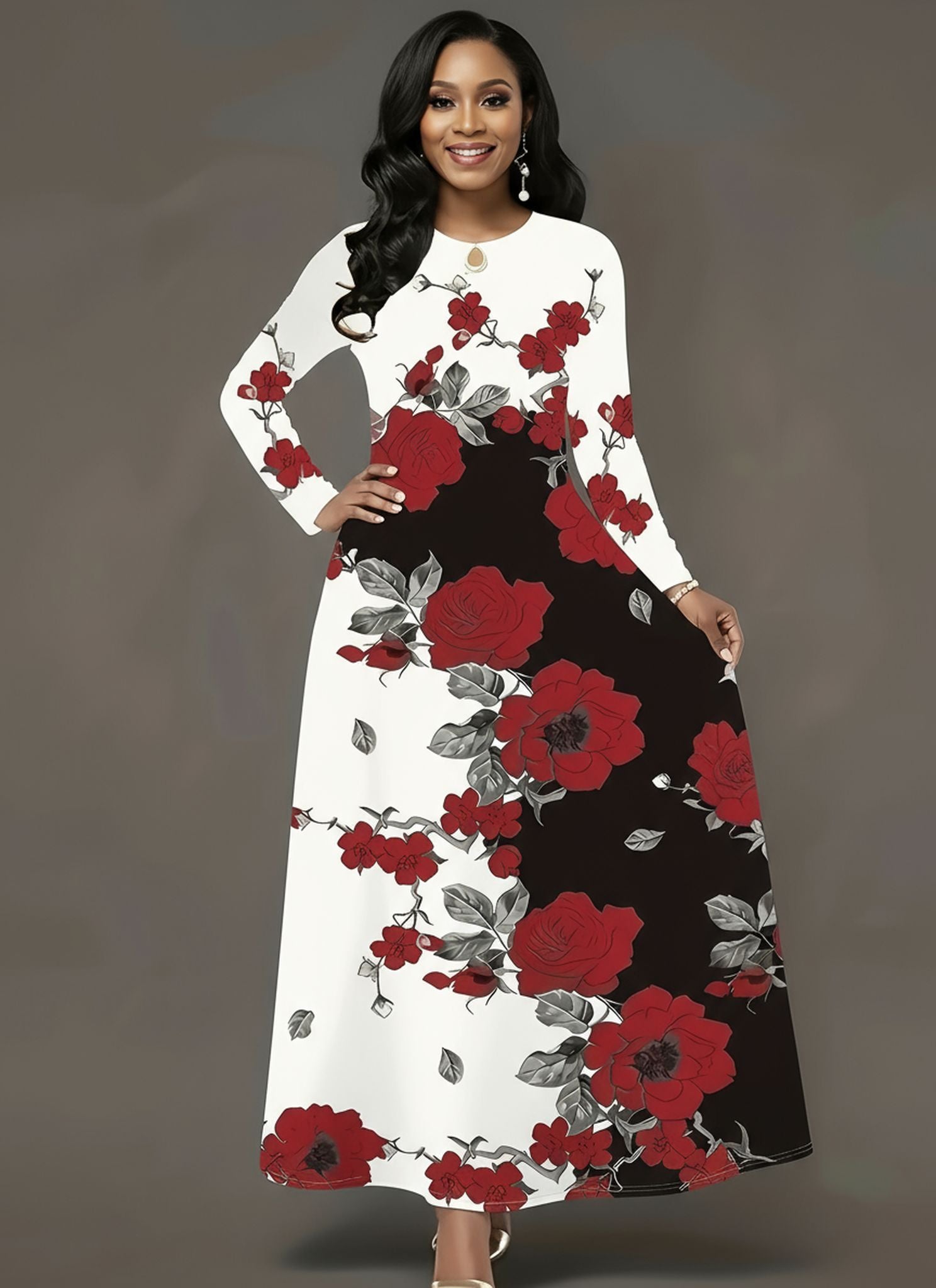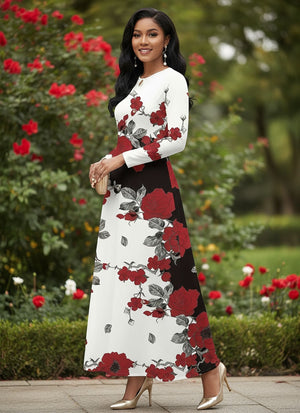 High Waist Plus Size Pockets Round Neck Long Sleeves Big Swing Skirt Dress Long Skirt Women