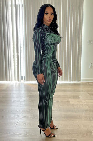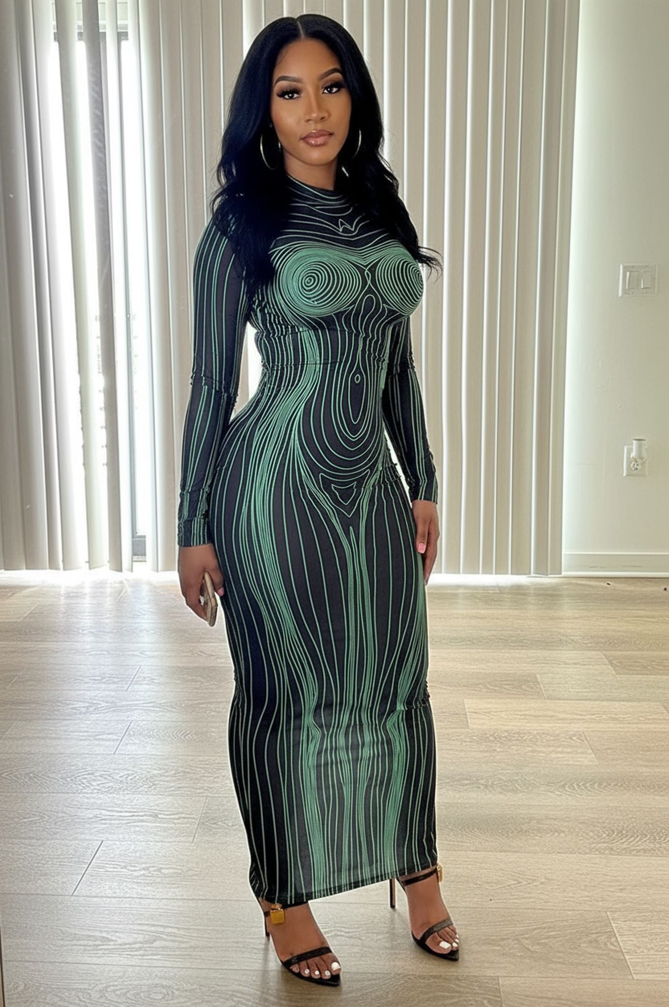 Long-Sleeved Crew Neck Fashion Print Slim Hip Bottom Dress