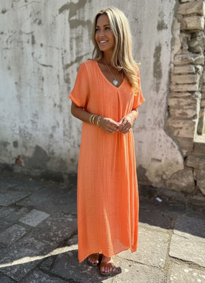 Loose Casual Fashion Cotton And Linen V-Neck Cotton And Linen Short Sleeve Dress