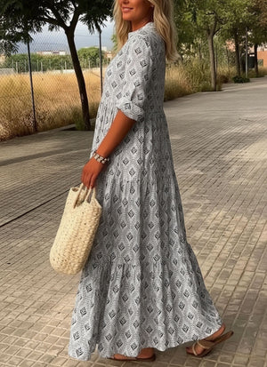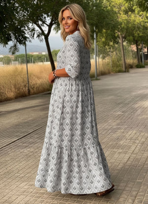 New Cross-Border Aliexpress Retro Stand Collar Large Size Fashion Loose Dress Long
