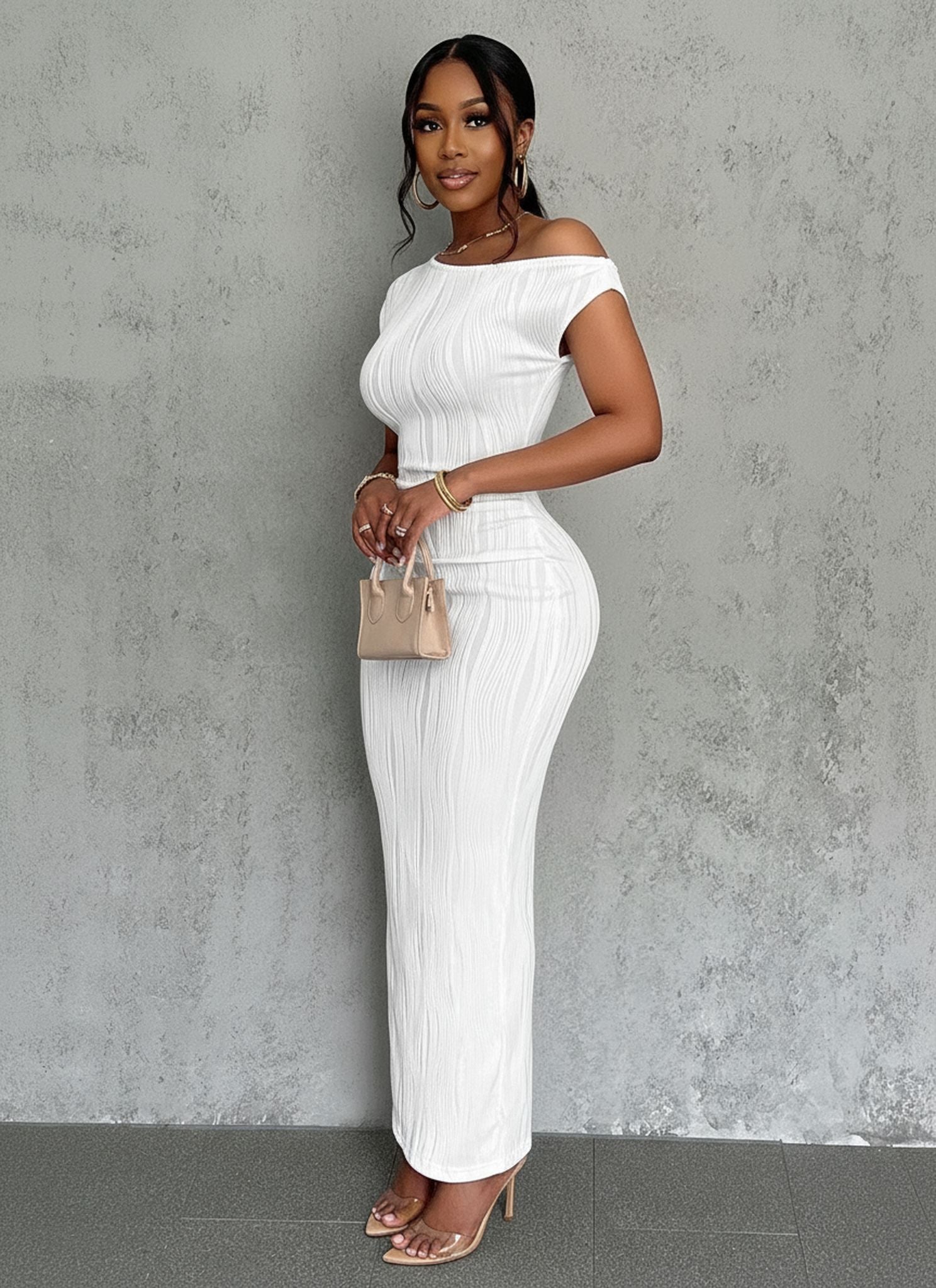 New Cross-Border Cute Fashion Water Ripple Slanted Shoulder Dress
