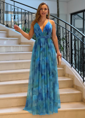 New Mesh Print Slip Dress Ins Vacation Casual Big Swing Dress For Women.