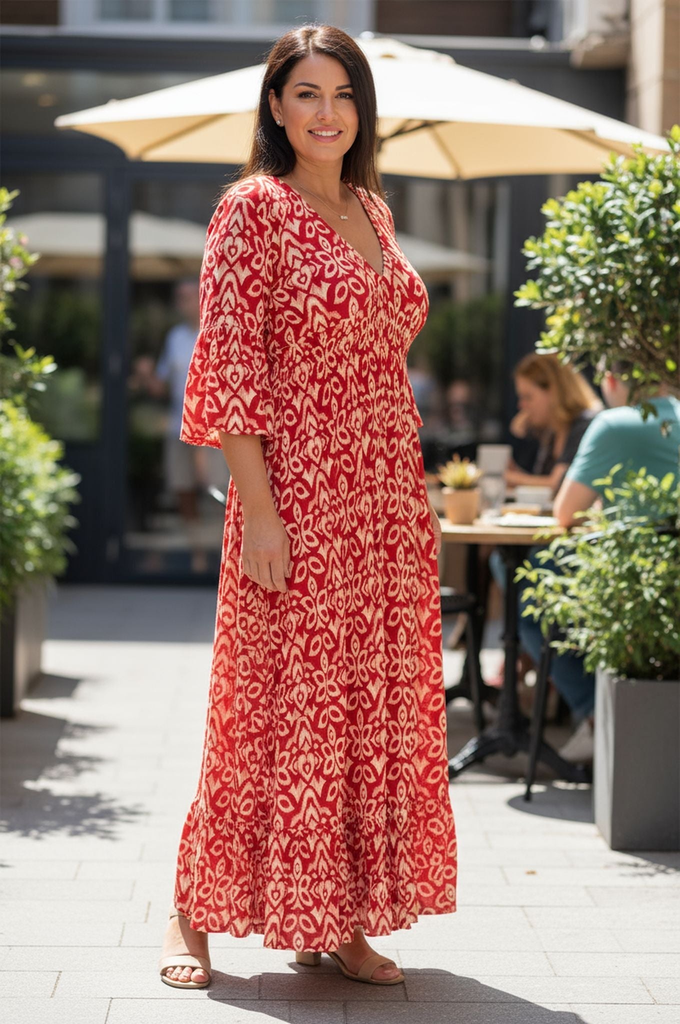 New Plus Size Loose Long Seaside Resort Beach Skirt V-Neck Floral Dress