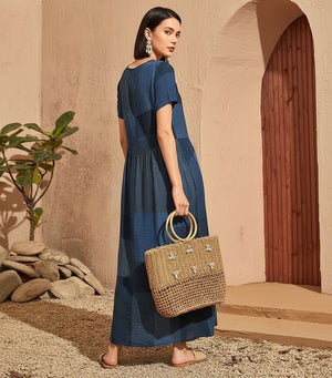 New Retro Loose Waist Pocket Long Skirt Casual Plaid Print Spliced Women'S Dress