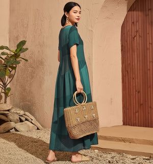 New Retro Loose Waist Pocket Long Skirt Casual Plaid Print Spliced Women'S Dress