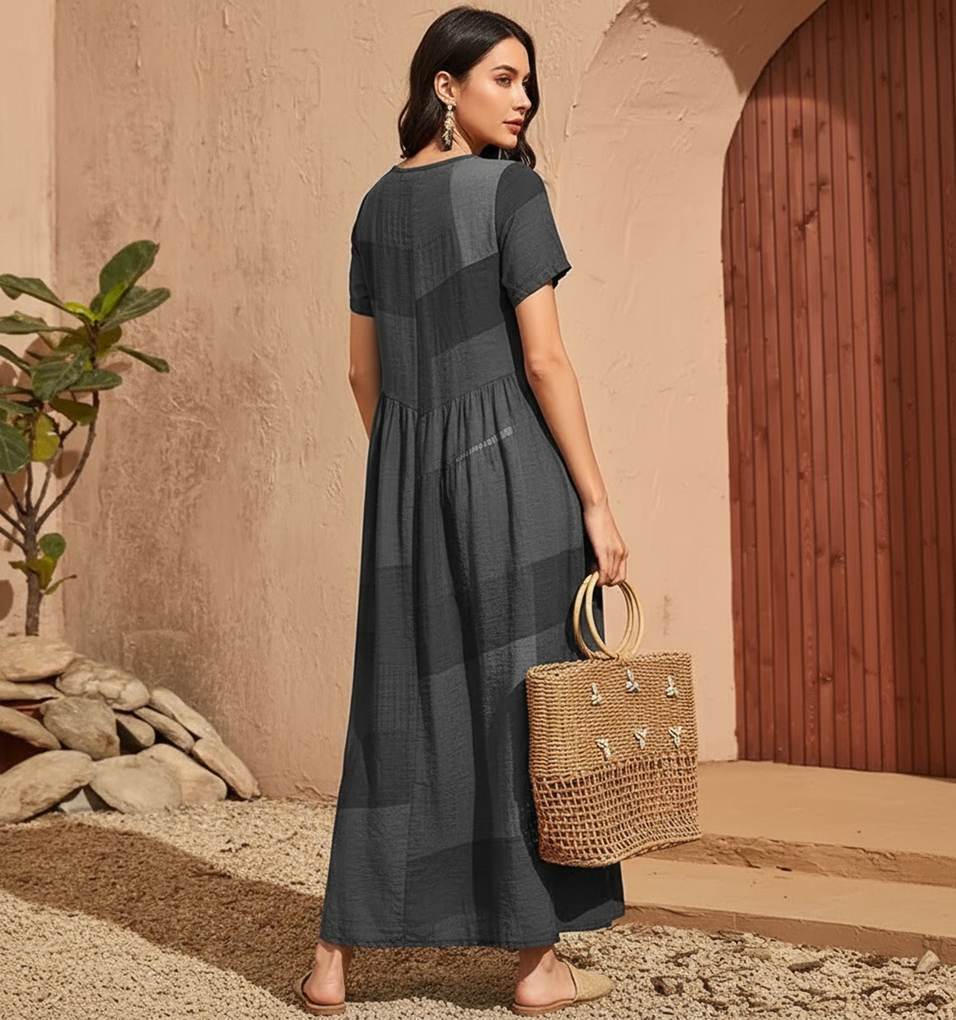 New Retro Loose Waist Pocket Long Skirt Casual Plaid Print Spliced Women'S Dress
