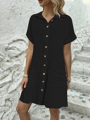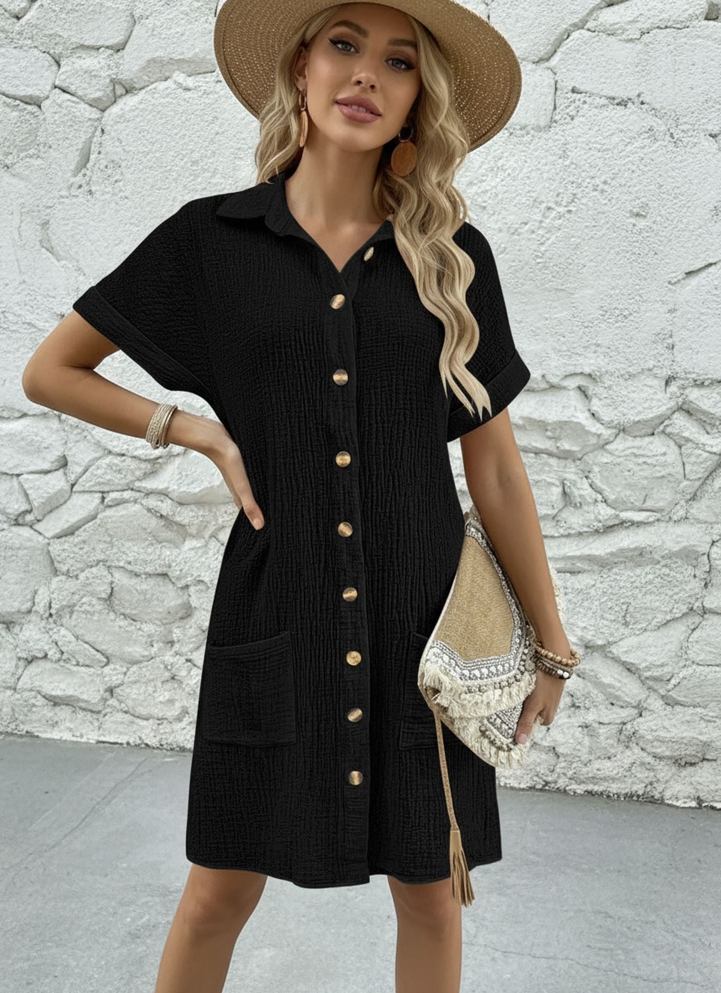 New Simple Solid Color Casual Fashion Lapel Button-Down Shirt Dress