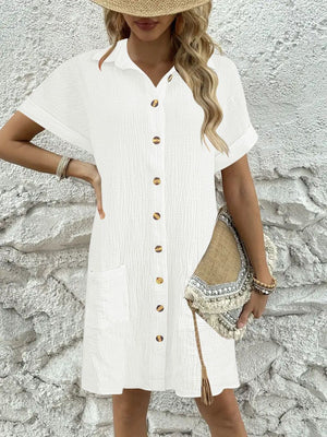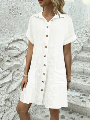 New Simple Solid Color Casual Fashion Lapel Button-Down Shirt Dress