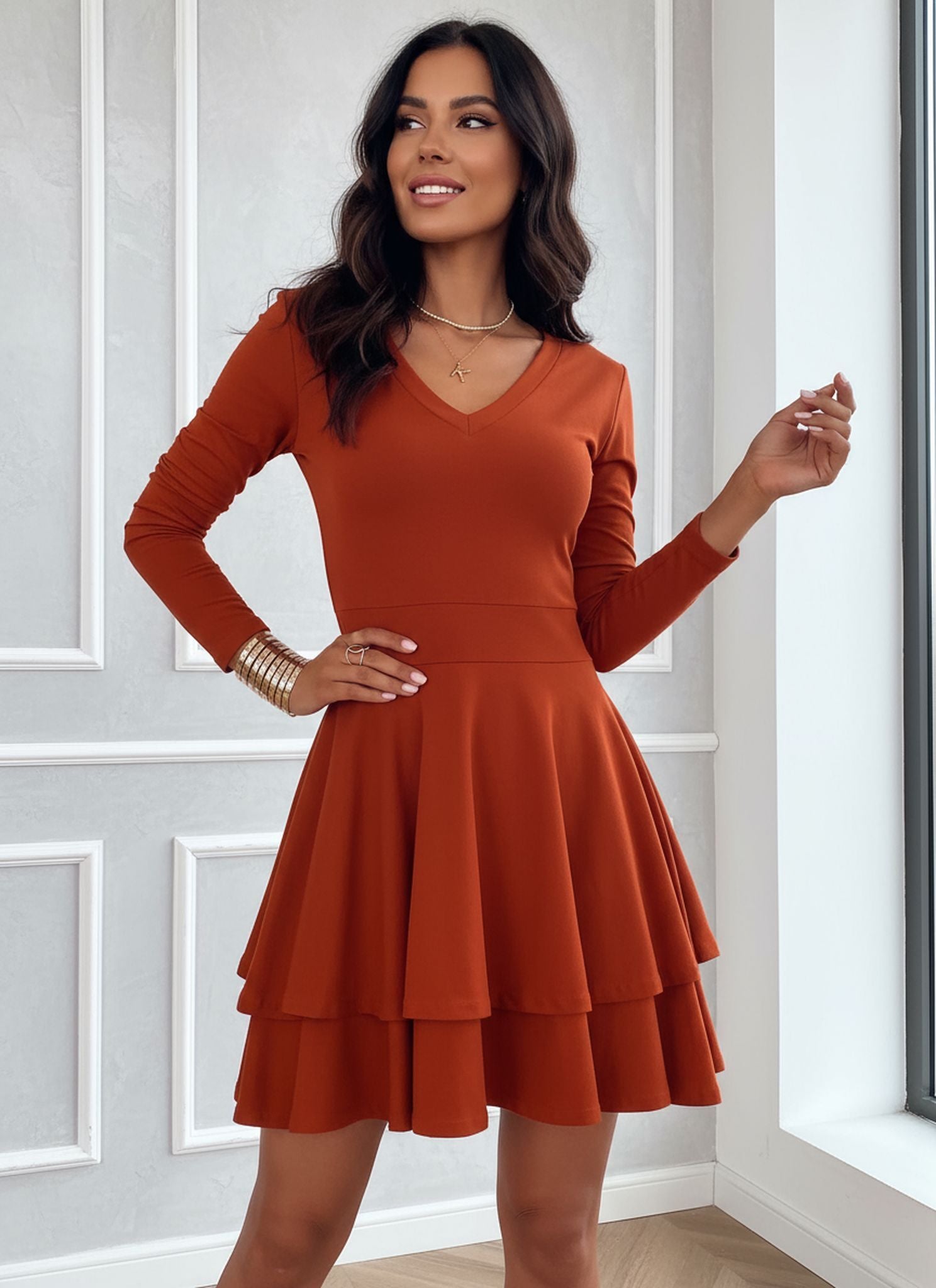 Size chart for New Solid Color Street Hipster Mid-Waist Pullover Spliced Hem Women'S Long Sleeve Dress