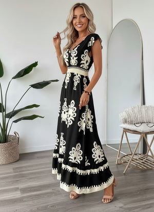 New Summer Fashion Printed V-Neck Waist Long Dress