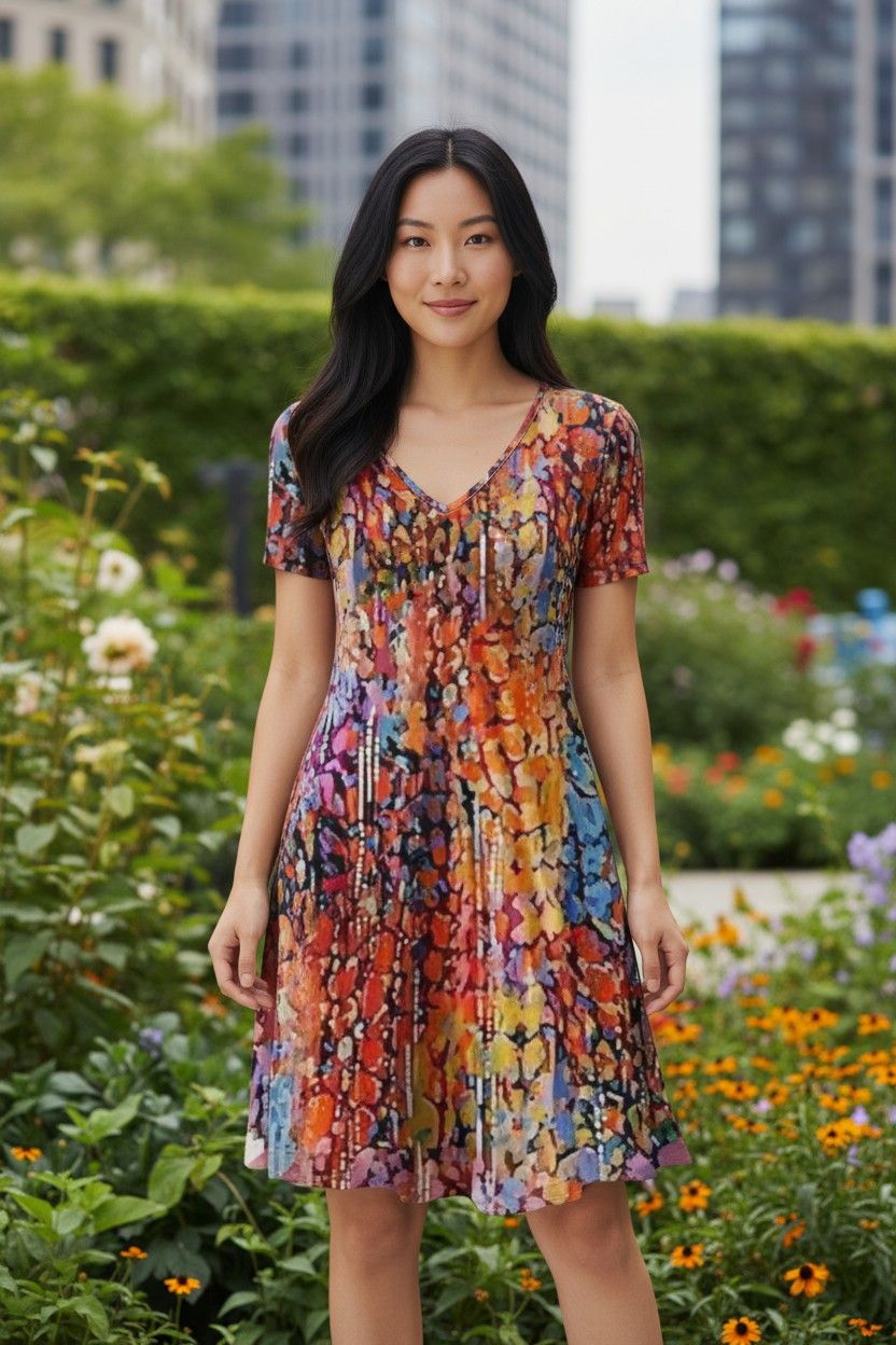 Size chart for New V-Neck Print Short Sleeve Women'S Dress Printed