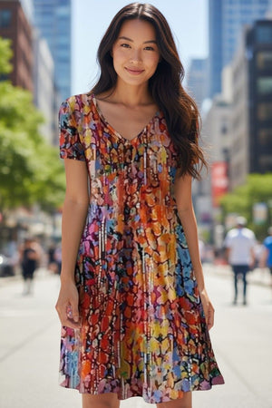 New V-Neck Print Short Sleeve Women'S Dress Printed