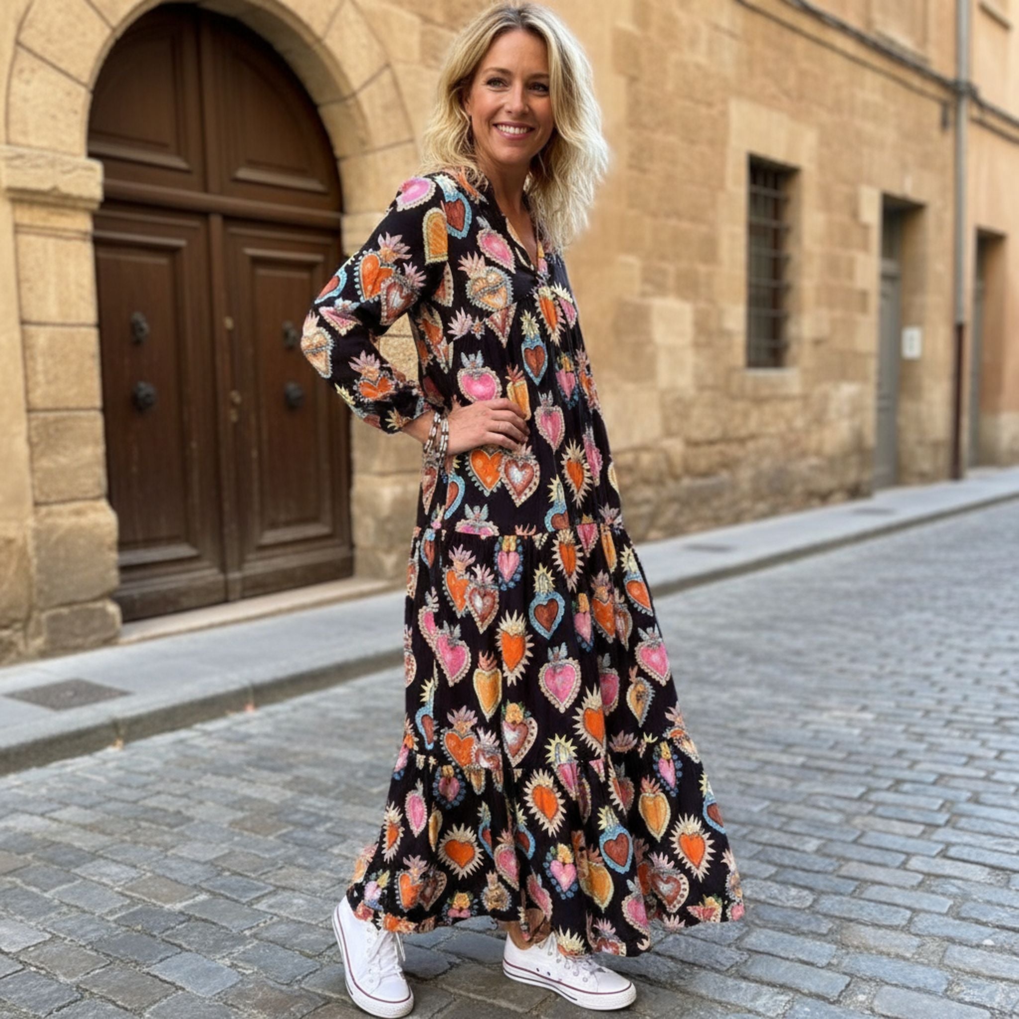 Plus-Size Loose Fashion Print Temperament Commuter Plus-Size Women'S Autumn And Winter Dress