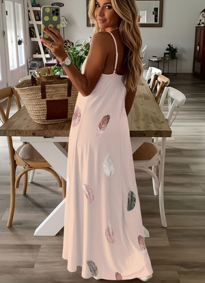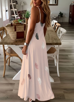 Print Low-Cut V-Neck Suspender Large Swing Skirt Women'S Dress