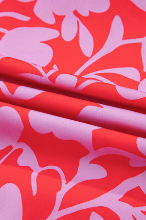 Red Floral Three Quarter Sleeves Ruffle Hem Mini Dress