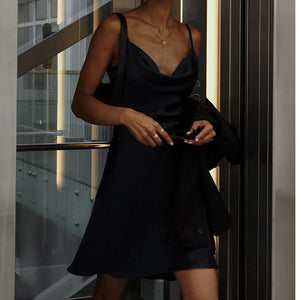 Skirt With Elegant Temperament, Pocket Collar, Satin Basic Backless Slip Dress