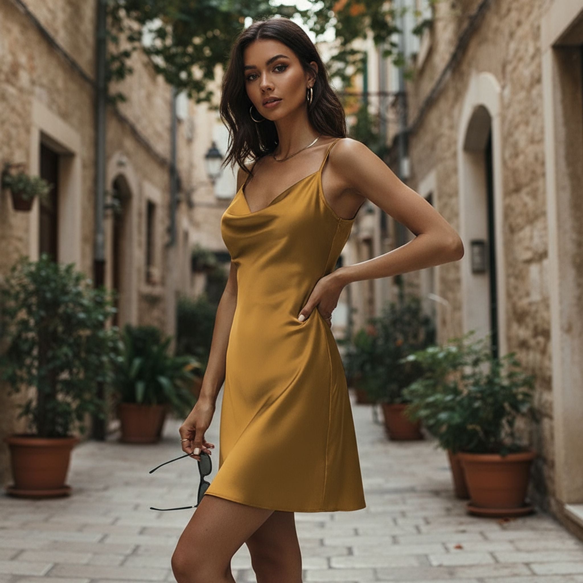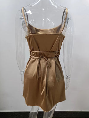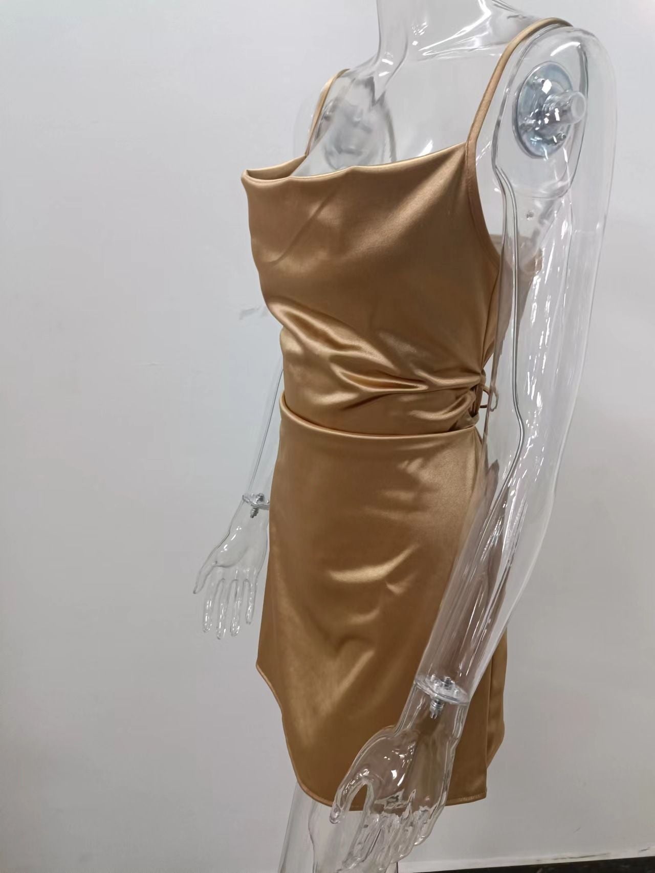 Skirt With Elegant Temperament, Pocket Collar, Satin Basic Backless Slip Dress
