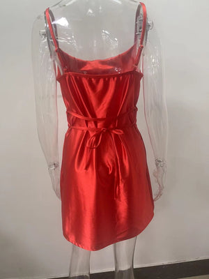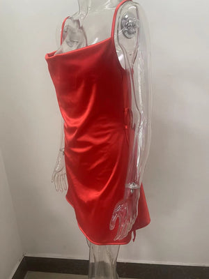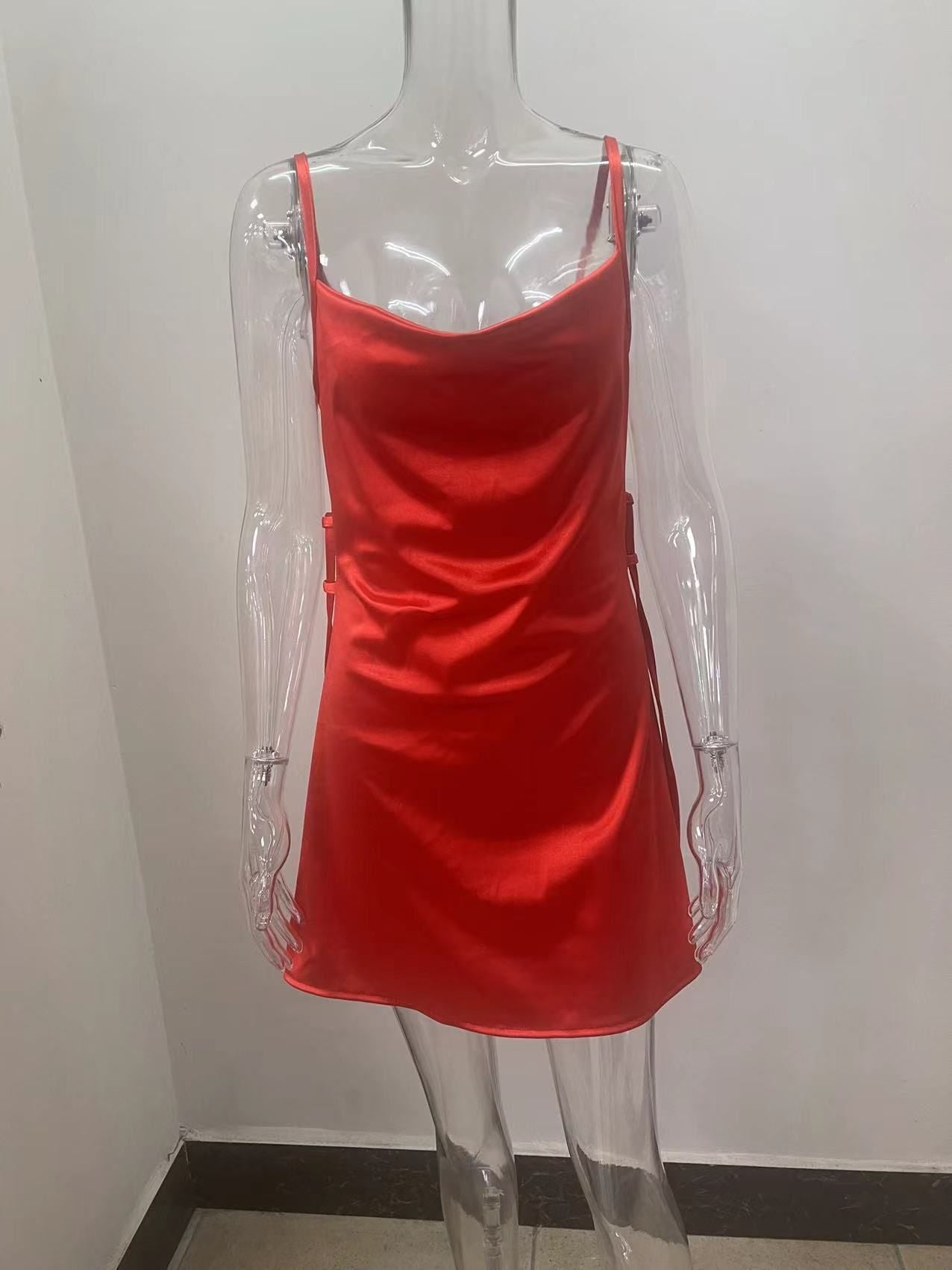 Skirt With Elegant Temperament, Pocket Collar, Satin Basic Backless Slip Dress