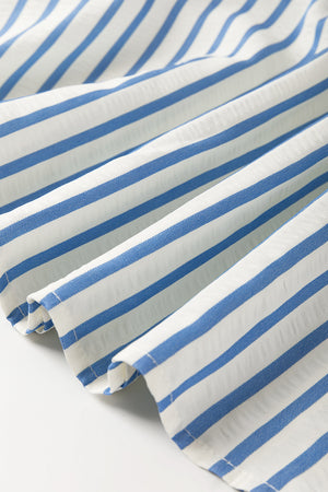 Sky Blue Stripe Knotted Bracelet Sleeve Notched Neck Shift Mini Dress
