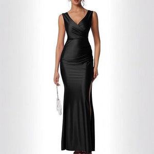 Slim Solid Color Temperament Fashionable And Sexy Foreign Trade Slit Slatted Dress