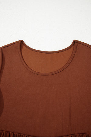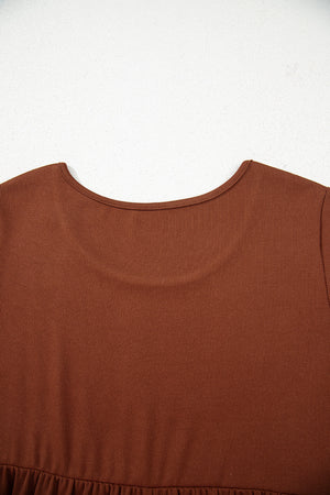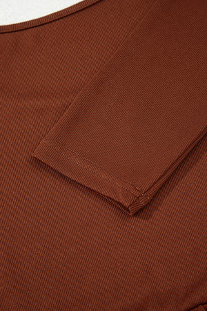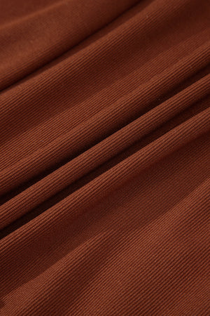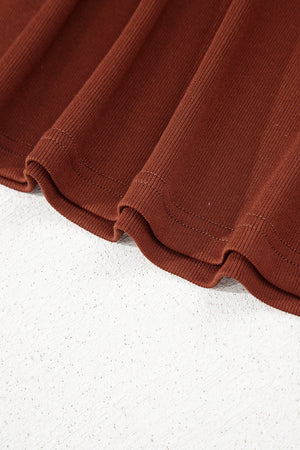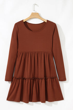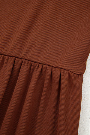 Straw Yellow Ribbed Frilled Trim High Waist Long Sleeve Mini Dress