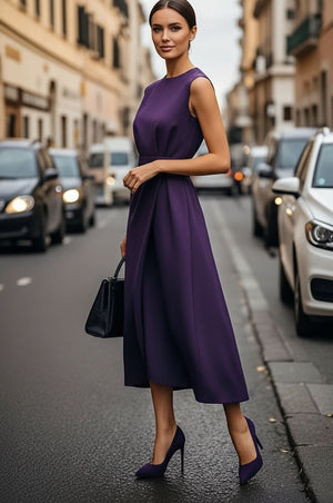 Summer Sleeveless Crew Neck Fashion Casual Long Dress Women