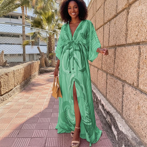 V-Neck Lace-Up Single-Breasted Beach Dress Women'S