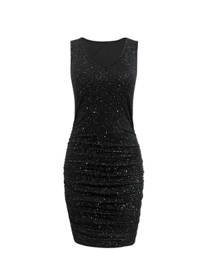 V-Neck Sexy Sleeveless Powder Tight Buttocks Temperament Dress