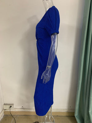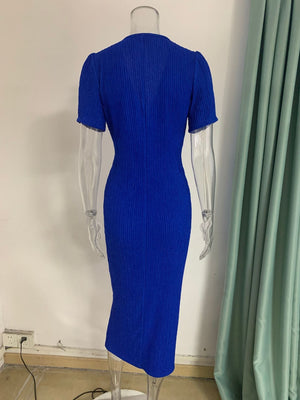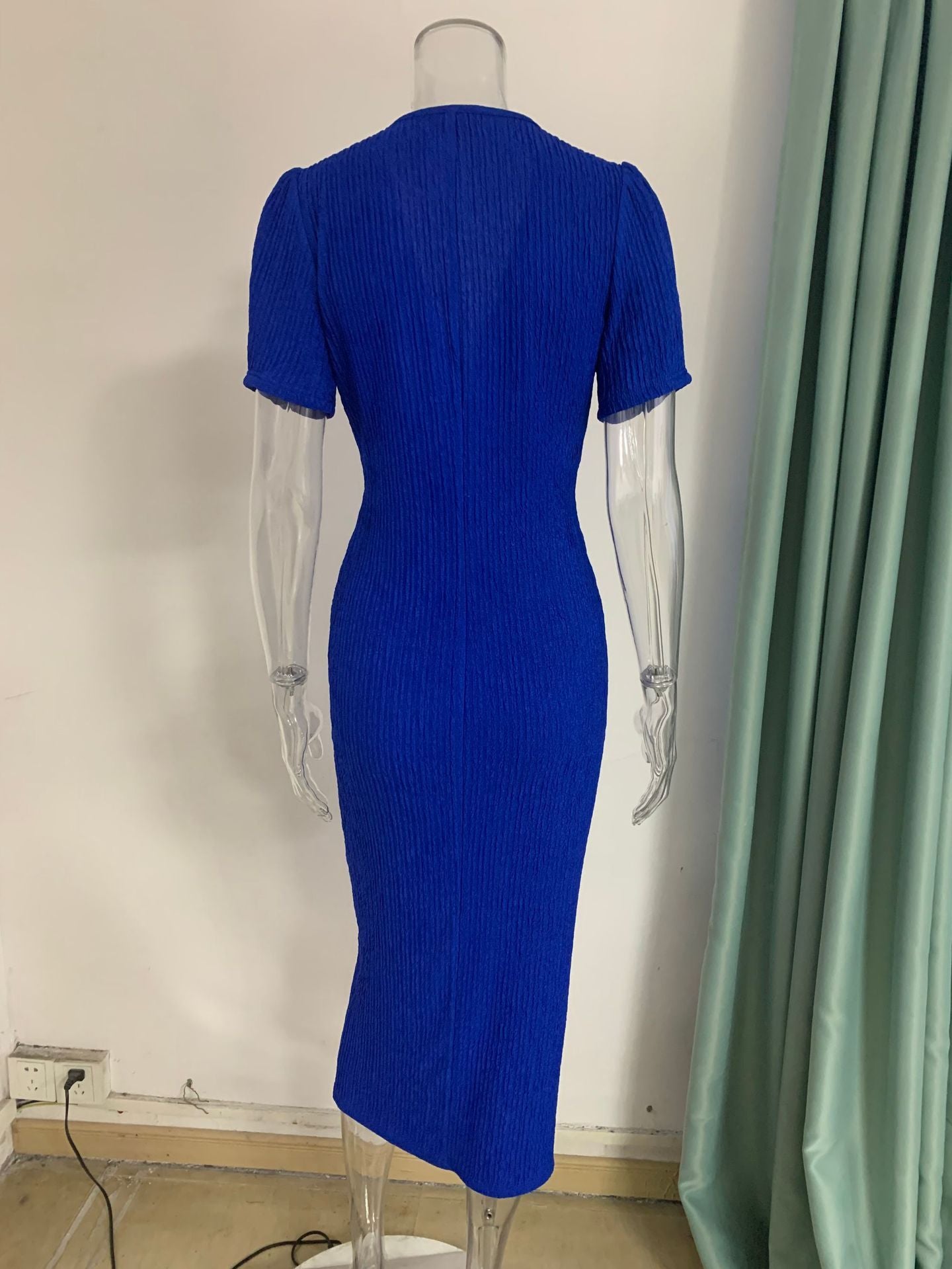 V-Neck Solid Color Hip Slit Temperament Elegant Waist Dress Evening Dress