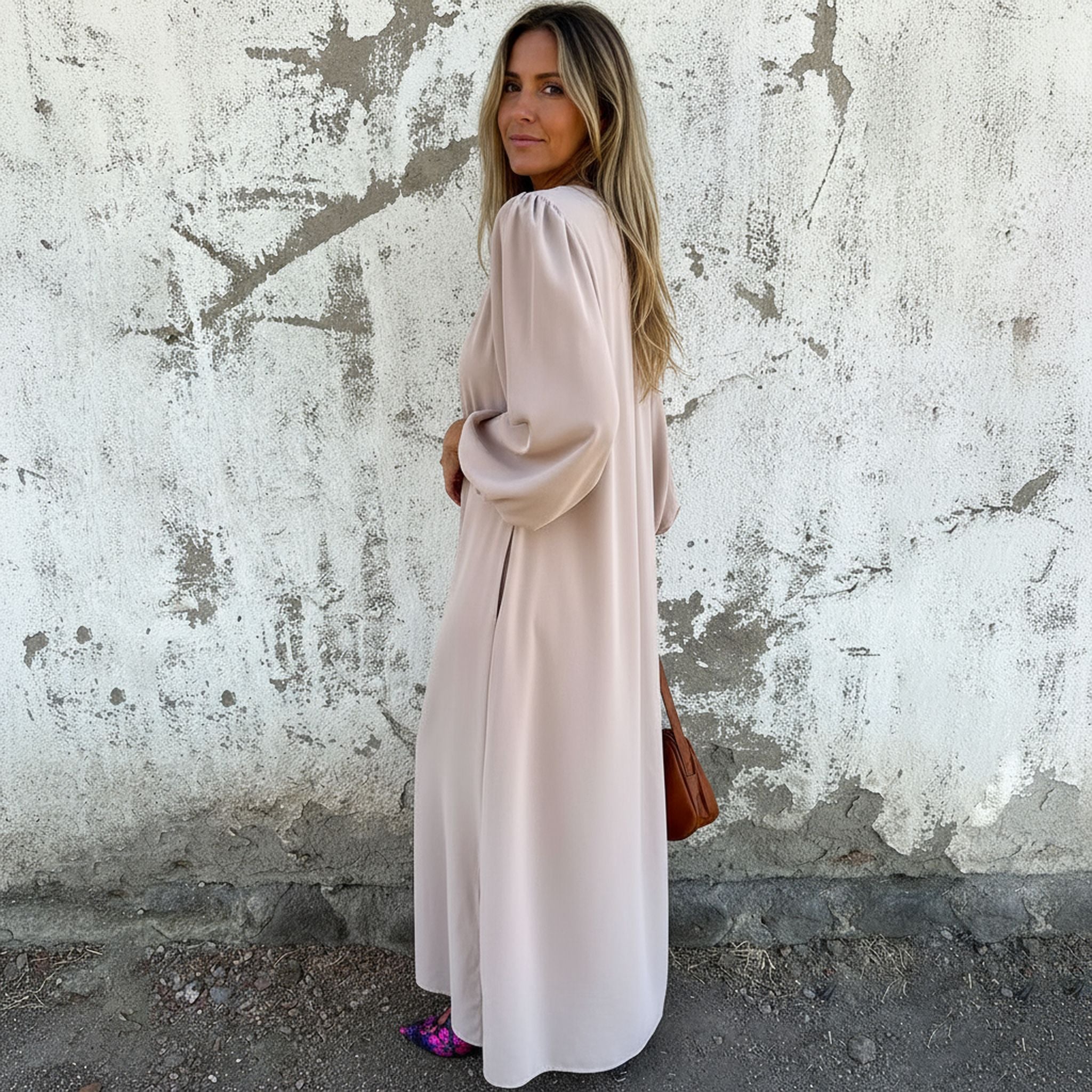 V-Neck Solid Color Women'S Lantern Sleeve Dress