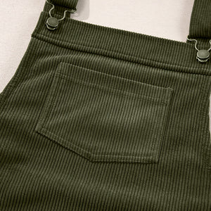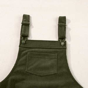 Vineyard Green Solid Front Pockets Sleeveless Corduroy Overall Dress