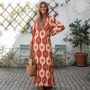 Winter New Products Independent Station Aliexpress Fashion Printed V-Neck Long Dress
