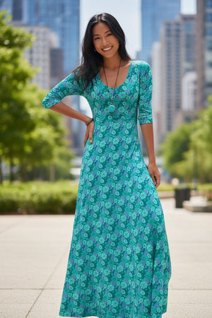 Winter Plus Size Women Pretty Beauty Long Sleeve Fashion Flower Print Dress Long Skirt